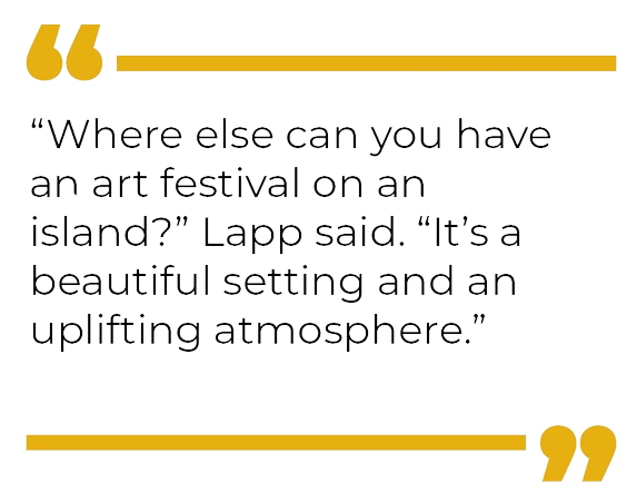 “We do this because we love art and we want to give people a positive space to look at art,” Lapp said. “Where else can you have an art festival on an island? It’s a beautiful setting and an uplifting atmosphere. We love to share that with people.”