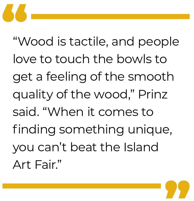“Wood is tactile, and people love to touch the bowls to get a feeling of the smooth quality of the wood,” Prinz said. “When it comes to finding something unique, you can’t beat the Island Art Fair.”