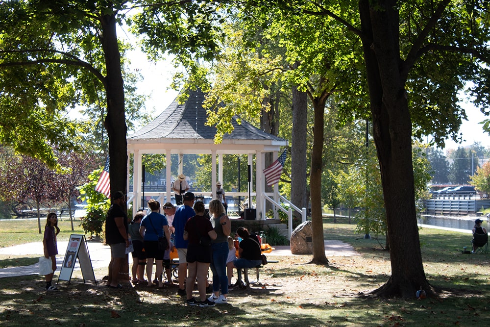 Vibrant color powder could still be seen on the footbridge at G.A.R. Island Park, as Autumn on the Island commenced, bringing its own family-friendly counterpoint to all the excitement downtown. From 1:00 p.m. to 4:00 p.m. Saturday, families strolled between shops downtown and activity stations beneath the park’s trees. The Eaton Rapids Area Chamber of Commerce sold punch cards for $20 that included all the fun fall activities such as painting pumpkins, cooking s’mores over a campfire, and decorating witch hats. Kids enjoyed getting their faces painted while snacking at the caramel apple bar and cookie crawl.