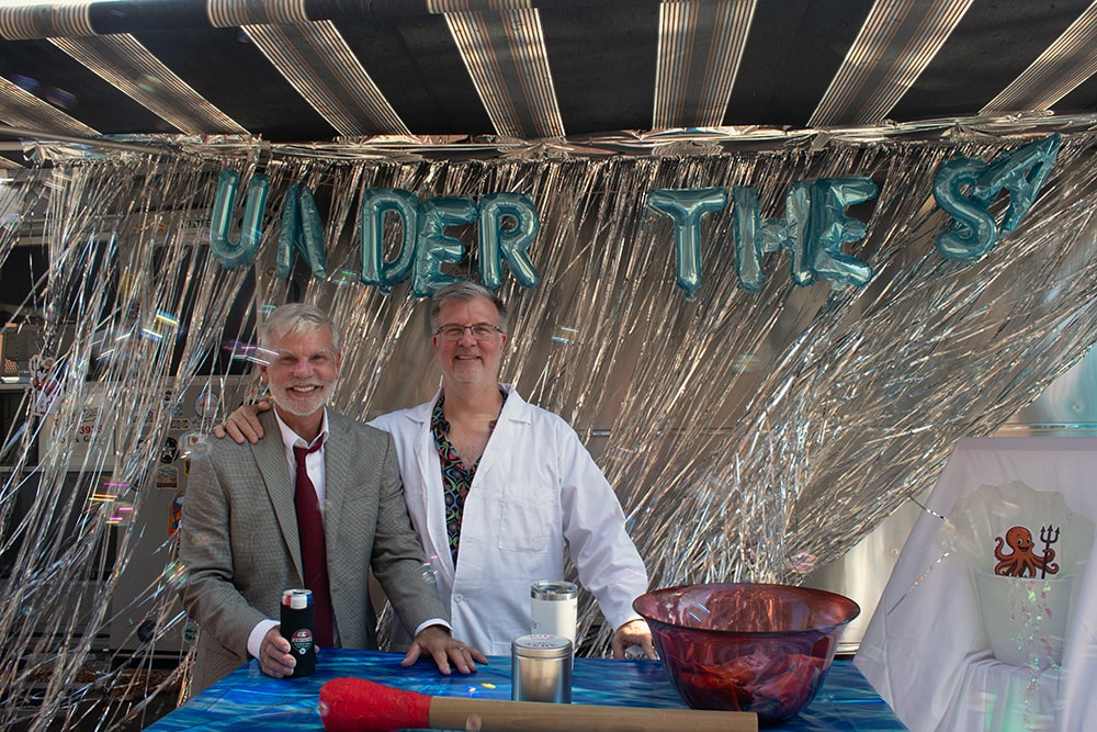 Airstreamers Gary Flint and Tom Diamond hosted the prom scene Under the Sea, complete with a bubble maker and period music parked in front of City Hall close to Urban Air Square and the Delorean. They also participated in Saturday’s scavenger hunt, with a giant match stick at their rig being an item participants needed to find.